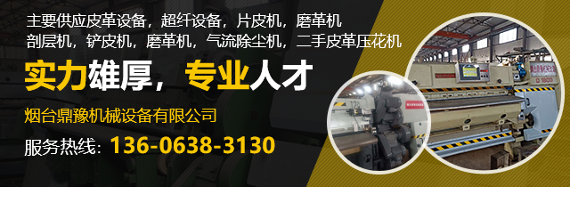 煙臺(tái)鼎豫機(jī)械設(shè)備有限公司位于山東省煙臺(tái)市芝罘區(qū)楚玉路238號(hào)泰和工業(yè)園,我公司主要經(jīng)營(yíng)皮革機(jī)械設(shè)備,超纖設(shè)備及配件的生產(chǎn),銷售。我們有好的產(chǎn)品和專業(yè)的銷售和技術(shù)團(tuán)隊(duì),主要供應(yīng)皮革設(shè)備,超纖設(shè)備,片皮機(jī),磨革機(jī),剖層機(jī),鏟皮機(jī),磨革機(jī),氣流除塵機(jī),二手皮革壓花機(jī)。我們具有專業(yè)維修國(guó)內(nèi)外各種型號(hào)精密片皮機(jī)的技術(shù)和能力,承攬大中小維修機(jī)械的業(yè)務(wù)。定制各種型號(hào)帶刀、砂輪等。